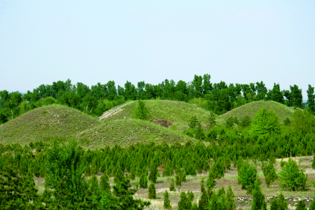 廣武漢墓群位于山陰縣西南,舊廣武與新廣武城之北,共 298座,為全國重點文物保護單位。整個墓群南依群山,北連朔州平川,從南向北俯瞰,由高到低、大小不一的封土堆星羅棋布。最高封土十多米,最低的也有三米多。其規模之大、數量之多為全國之首,整個墓群保存有珍貴的地下文物,對研究我國漢代政治、軍事、經濟和文化都具有重要的價值。