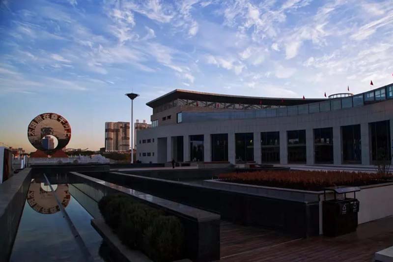 而“活化”當然還表現在展示方式上,雕塑的建筑手法別出心裁,雕塑的兩面融現代科技與當地文化于一體。迎光面運用鏡面白鋼材質,鏡面與自然天空景色融為一體,顯現出不同時段的壯麗景觀,打破了靜態主題雕塑的藝術展示方式。